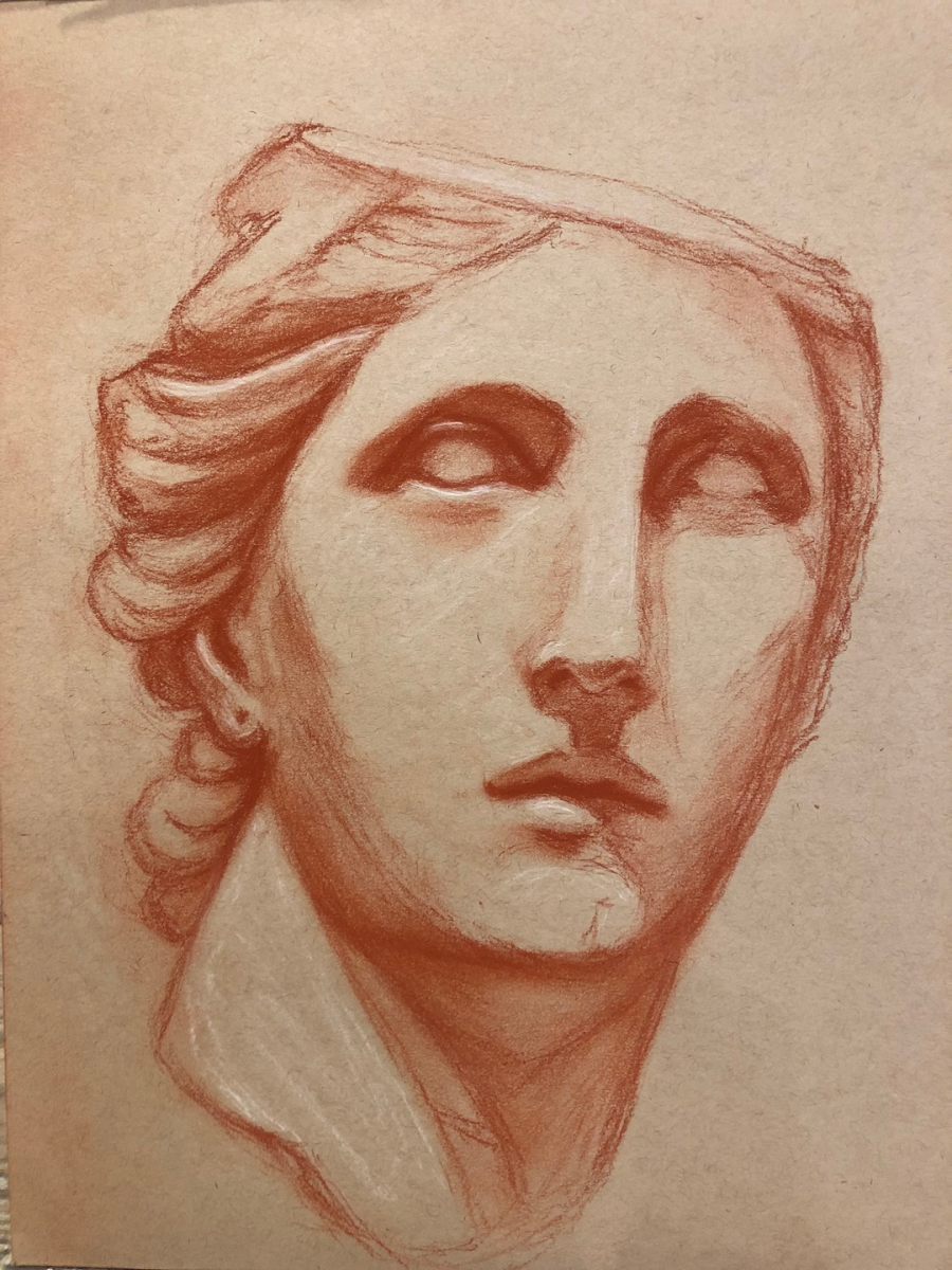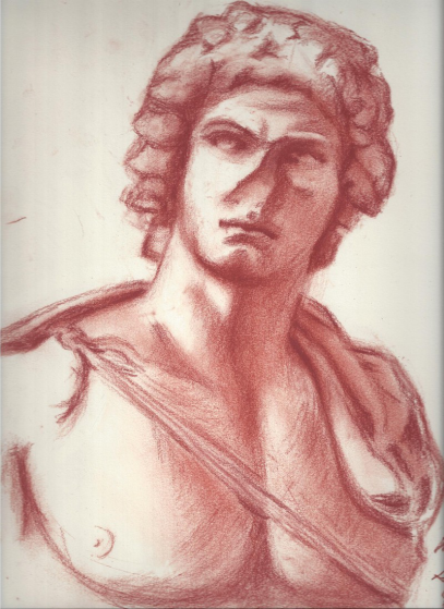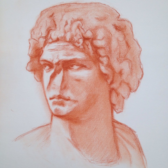 Sanguine on paper. A marble portrait of a young man drawing from the Metropolitan Museum of Art. 2015.